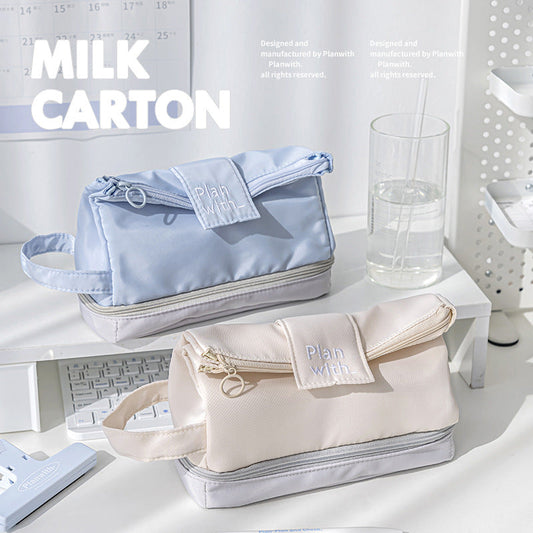 Milk Carton pencil case double fold large capacity pencil case