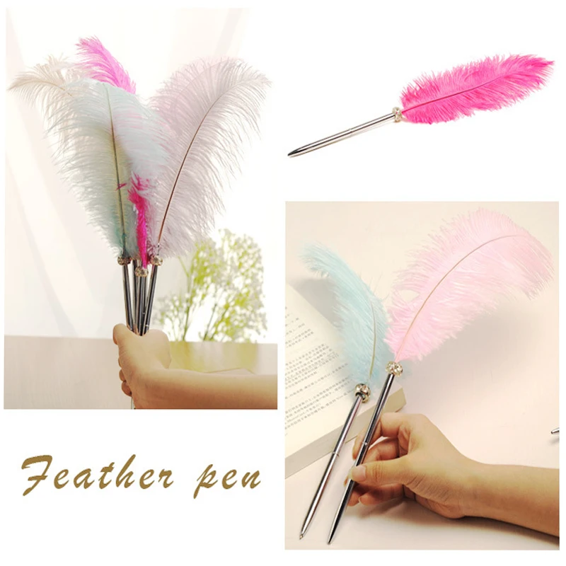 1PCS Feather Ballpoint Pen Ostrich Plush Cute 6 Color Office Signature Metal Pens Romantic Stationery Gift Office Supplies