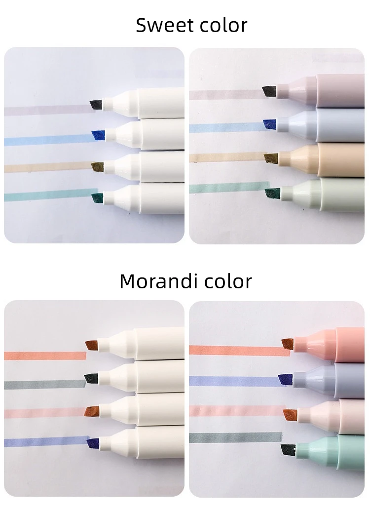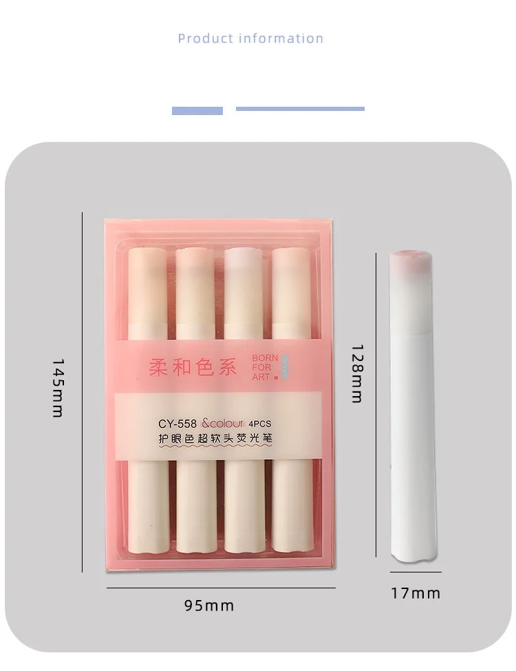 4pcs Light Color Highlighter Pens Set 1-4mm Super Soft Brush Spot Liner Art Marker for Drawing Paint Office School A7079
